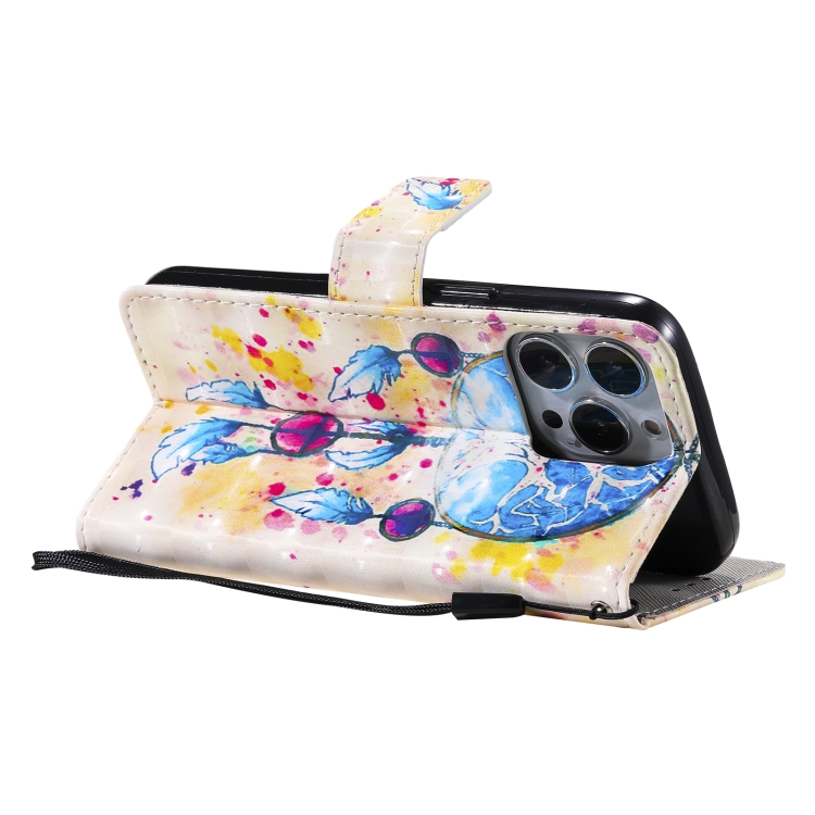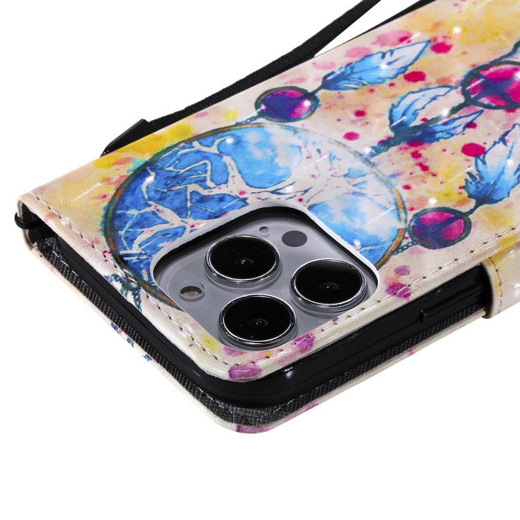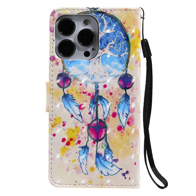 Estuche de Cuero para iPhone 13 Pro con Tapa Horizontal Patrón 3D Soporte Ranuras para Tarjetas y Billetera (Carillones de Viento)