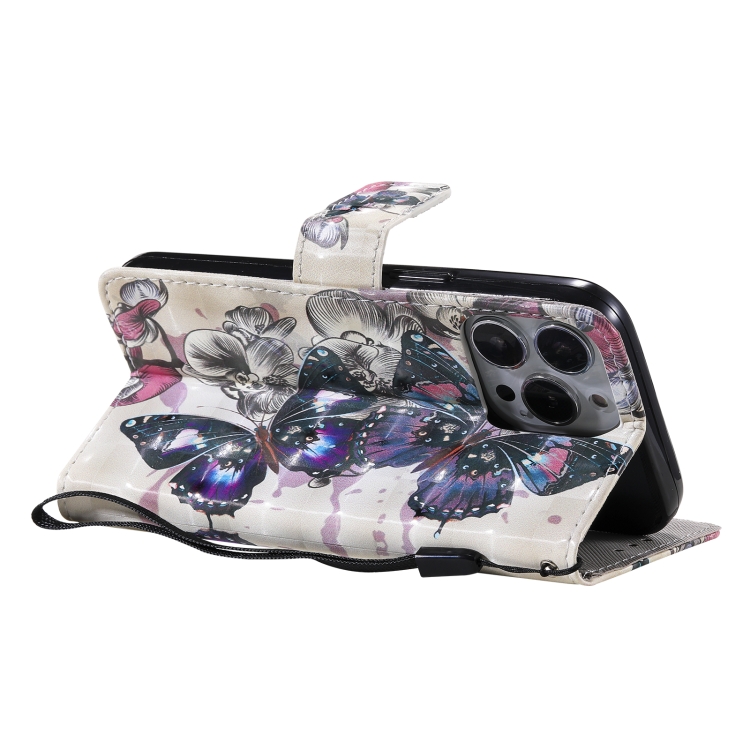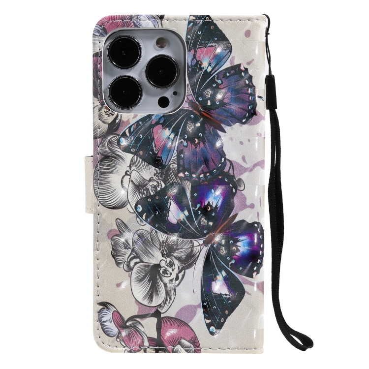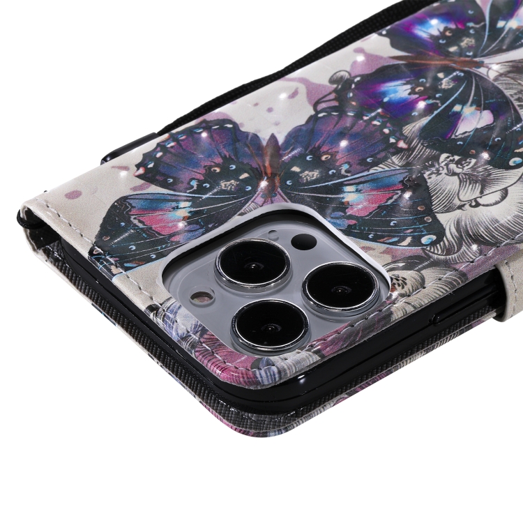 Estuche de Cuero para iPhone 13 Pro con Tapa Horizontal y Soporte con Ranuras para Tarjetas y Billetera (Mariposa Negra)