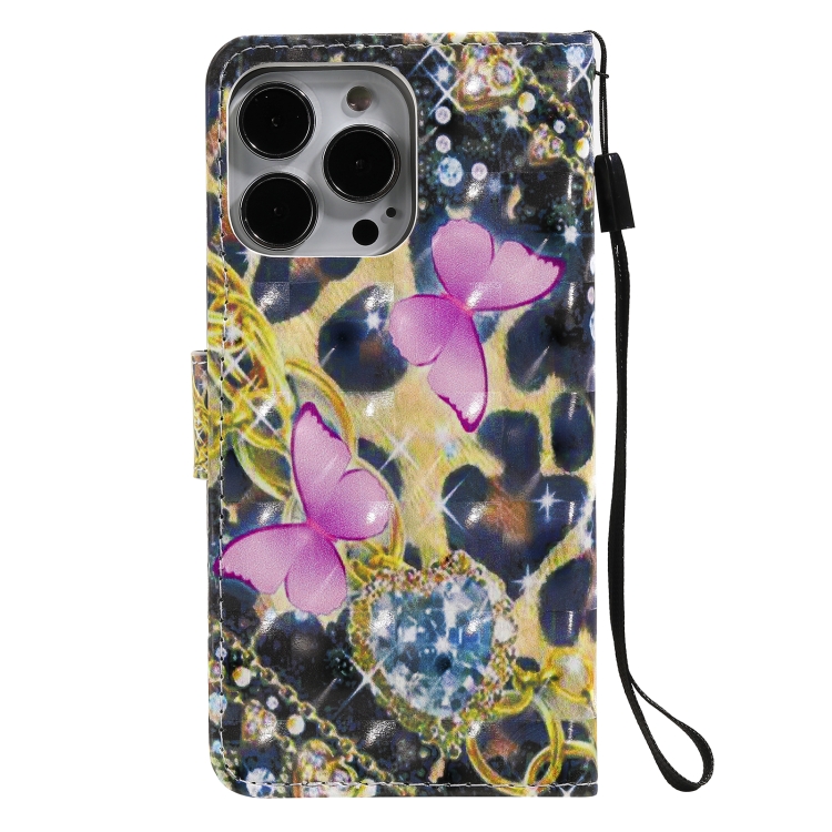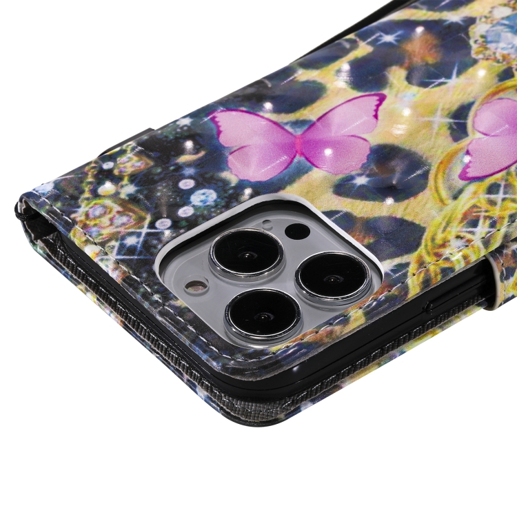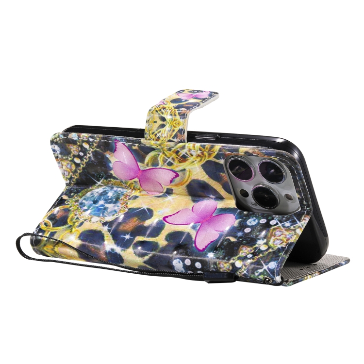 Estuche de Cuero para iPhone 13 Pro con Tapa Horizontal Patrón 3D Soporte Ranuras para Tarjetas y Billetera (Mariposa Rosa)