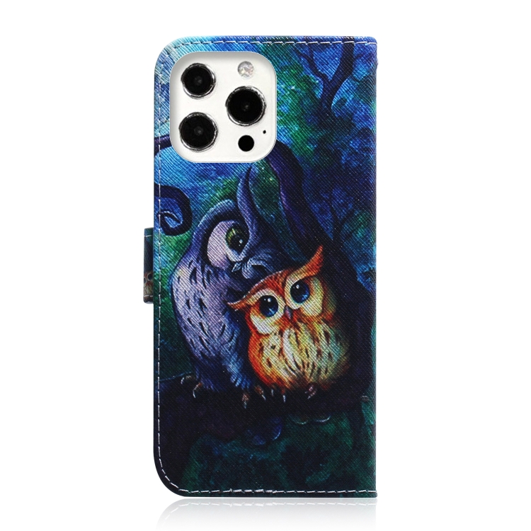 Estuche de Cuero para iPhone 13 Pro con Tapa Horizontal, Soporte, Ranuras para Tarjetas y Billetera (Búho de Pintura al Óleo)