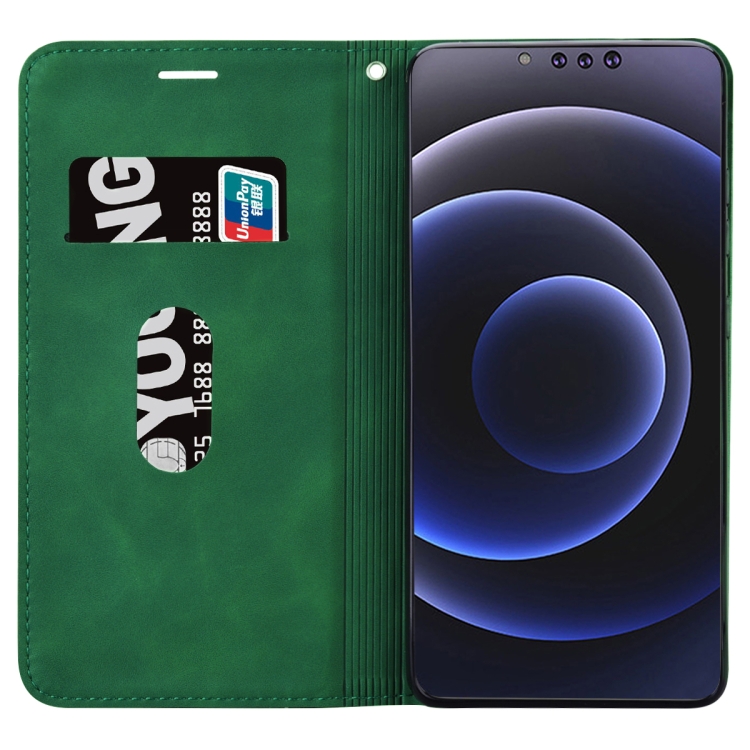 Estuche para iPhone 13 Pro Cuero de PU Tapa Horizontal Magnética Soporte Ranura Tarjeta Cordón (Verde)