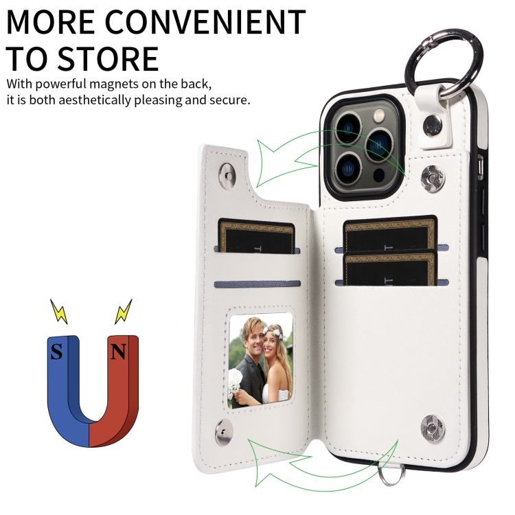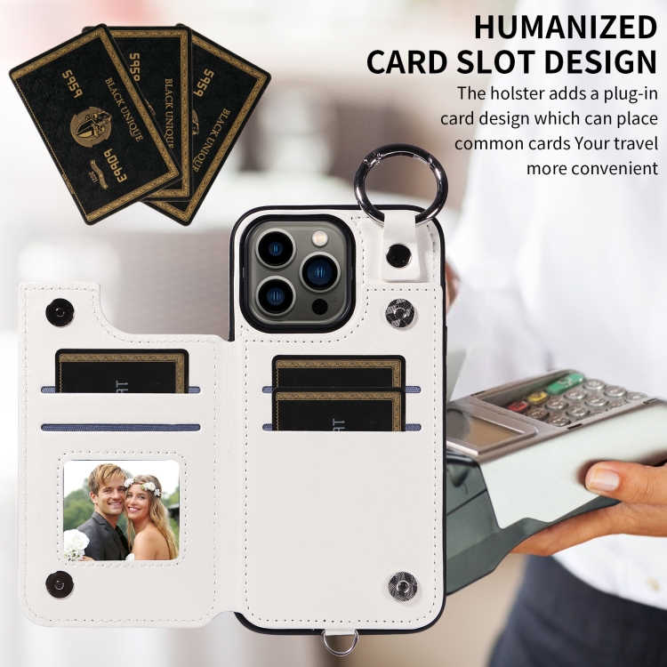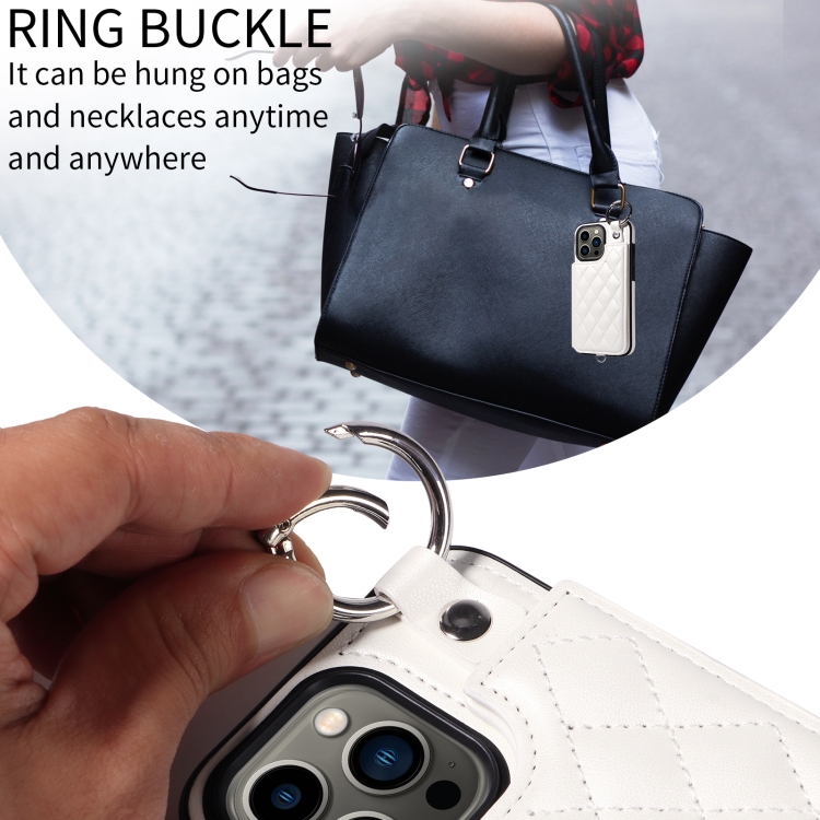 Estuche para Teléfono iPhone 13 Pro Bolsa para Tarjetas Textura Rómbica Cordón Corto (Blanco)