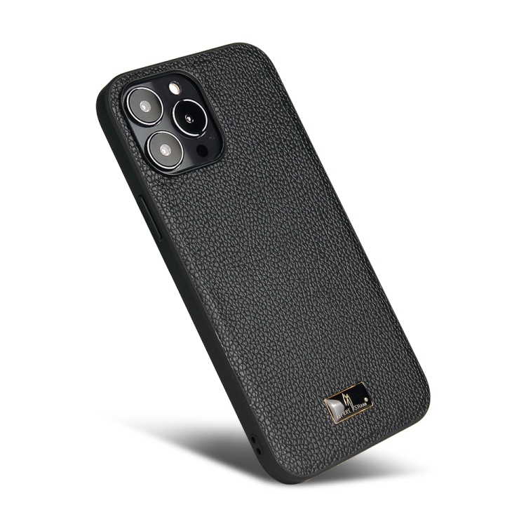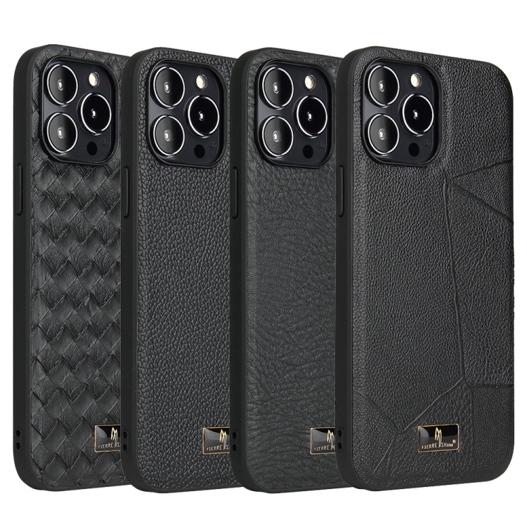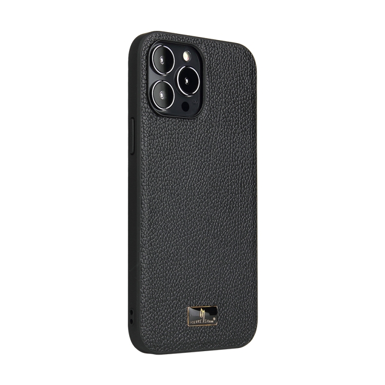 Funda Trasera para teléfono Fierre Shann iPhone 13 Pro Textura de Cuero (Lychee Black)