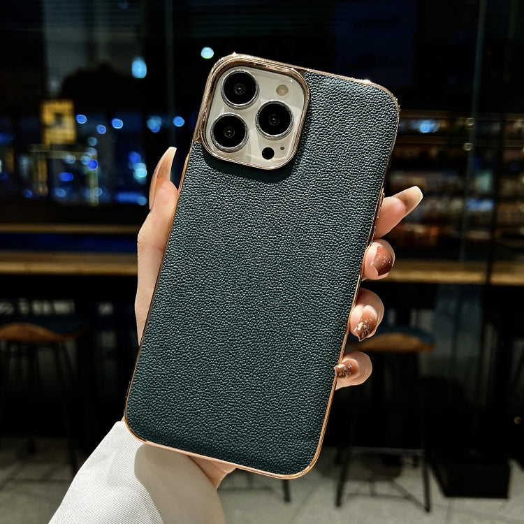 Funda para iPhone 13 Pro Luolai Series Cuero Genuino Nano Galvanoplastia (Verde Oscuro)