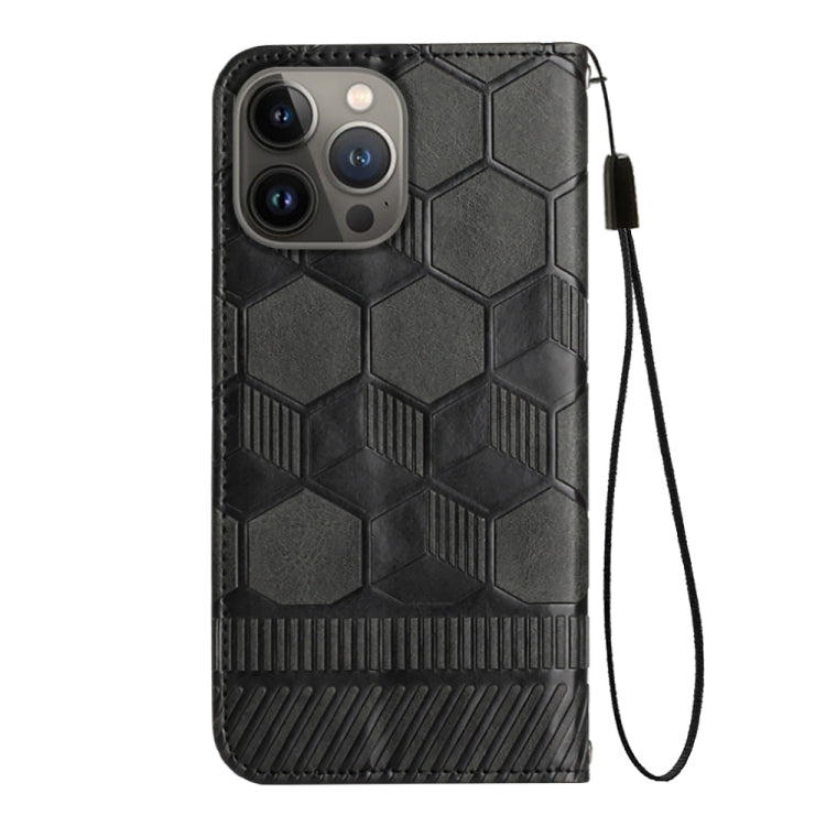 Funda de teléfono para iPhone 13 Pro con tapa de cuero magnético textura de fútbol (Negro)