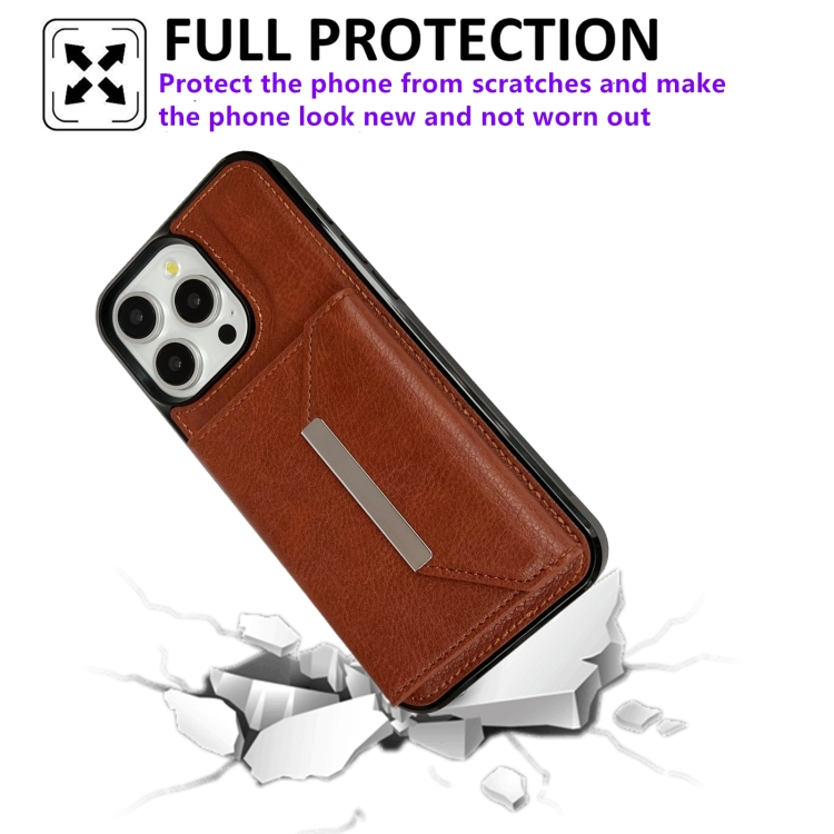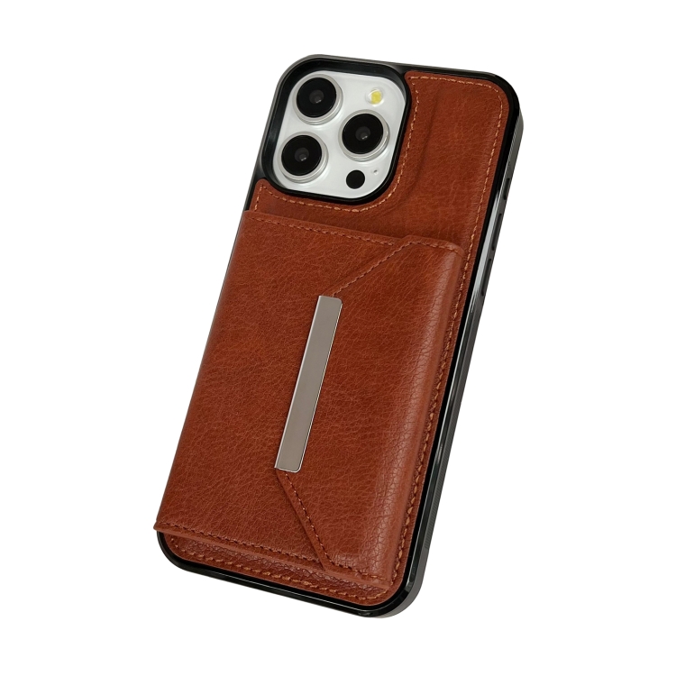 Funda para Teléfono iPhone 13 Pro con Bolsa y Ranuras para Tarjetas con Hebilla de Metal (Marrón)