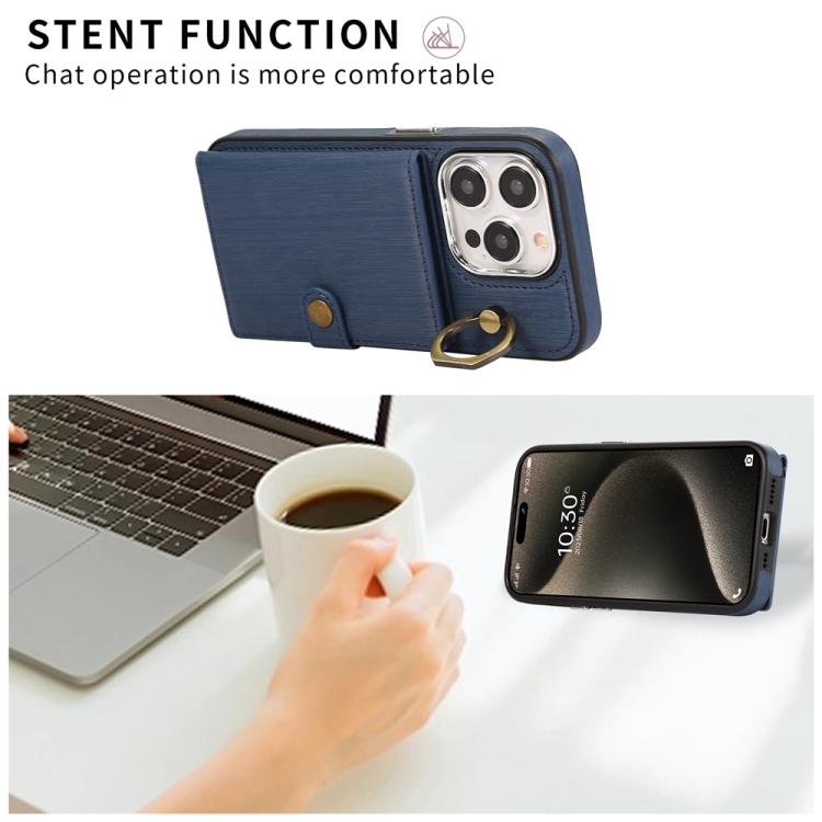 Funda para Teléfono iPhone 13 Pro con Soporte para Anillo y Billetera con Textura Cepillada (Azul)
