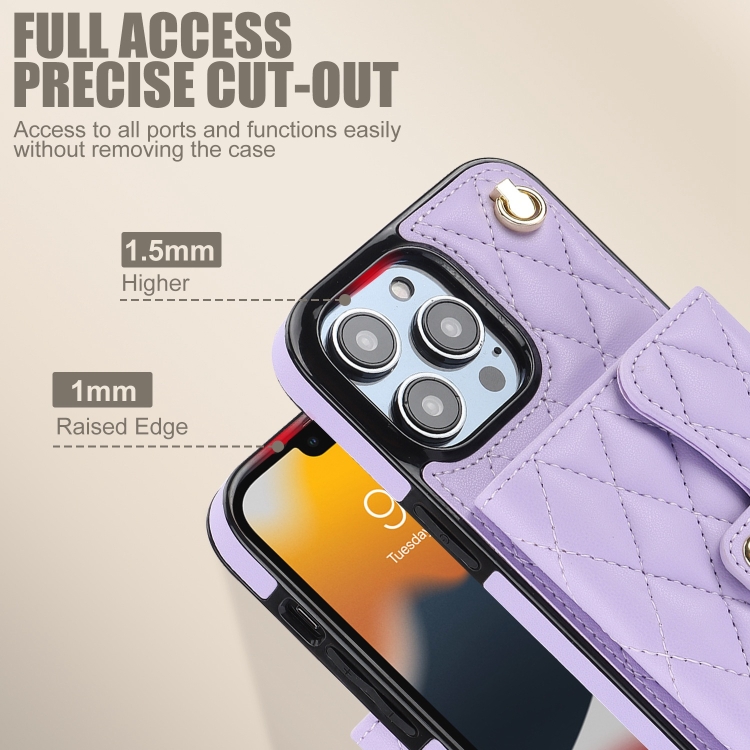 Funda para Teléfono iPhone 13 Pro Cuero con Billetera Horizontal Romboidal Cruzada (Púrpura)