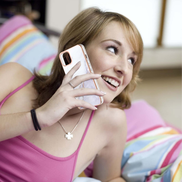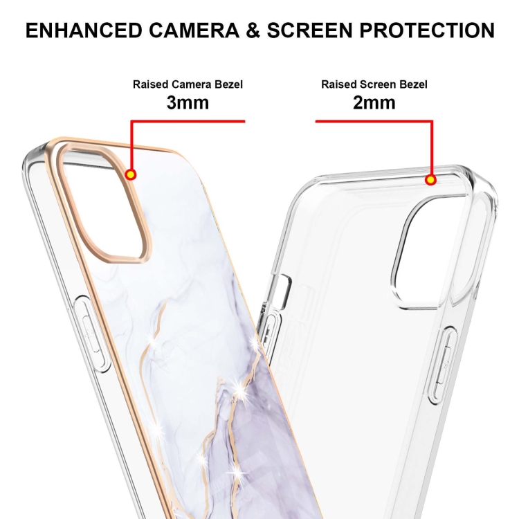 Estuche para iPhone 13 Pro Galvanoplastia Patrón de Mármol TPU Doble Cara (Blanco)