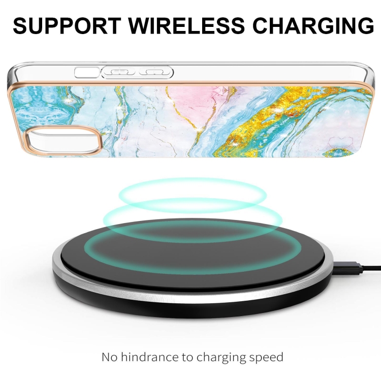 Estuche para iPhone 13 Pro Galvanoplastia Patrón de Mármol a Prueba de Golpes Imd TPU Doble Cara (Verde)