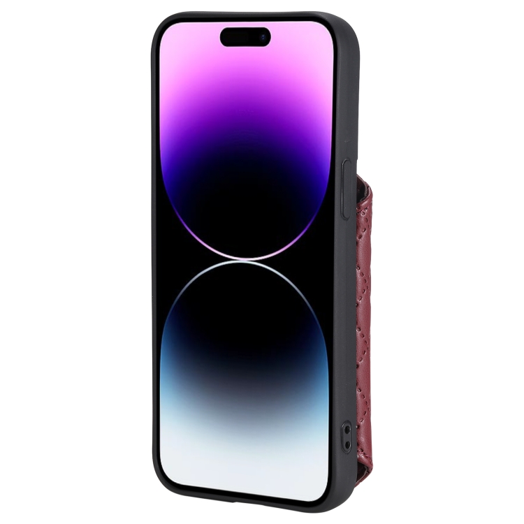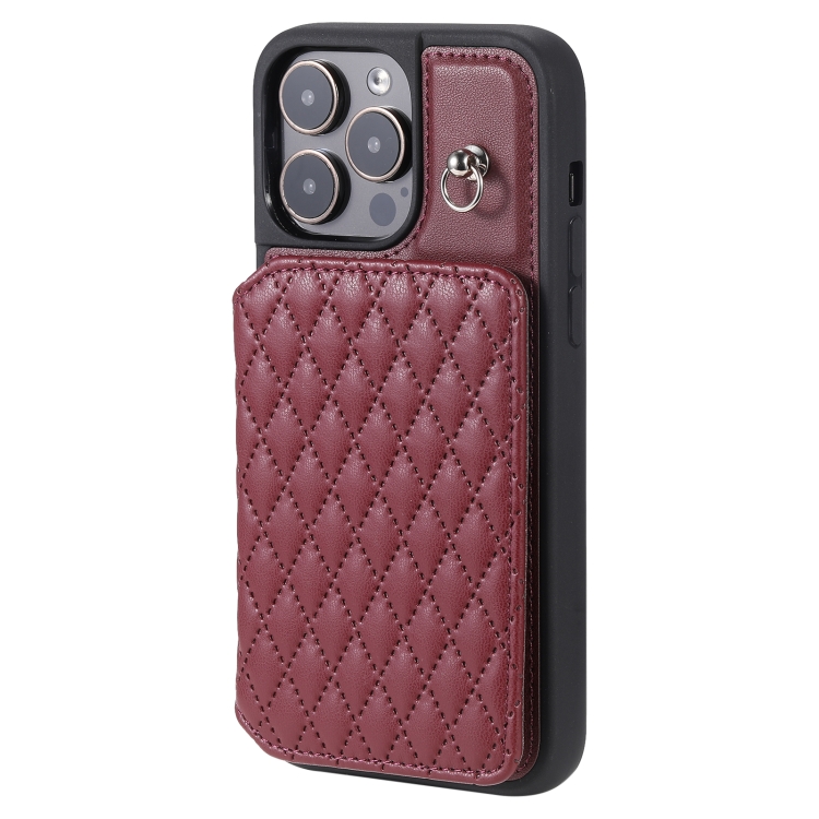 Funda para Teléfono iPhone 13 Pro Grid Texture Card Bag con Cordón (Rojo)