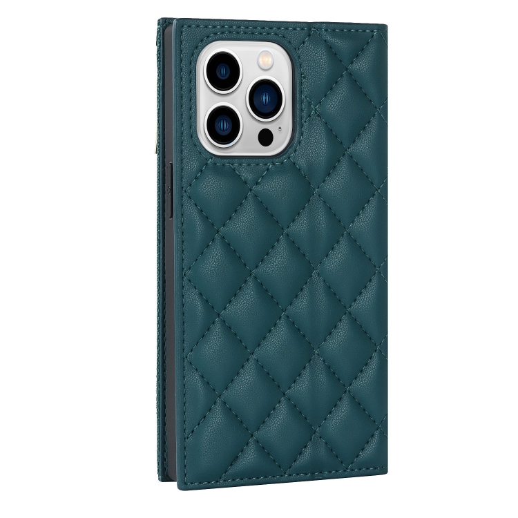 Funda de Cuero para iPhone 13 Pro Grid Texture con Lanyard y Cremallera (Verde)