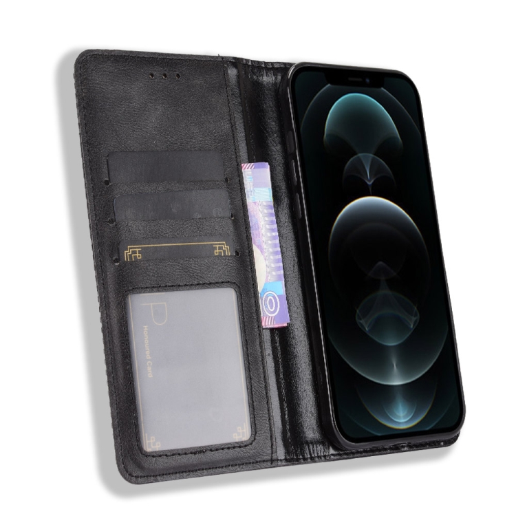 Funda para iPhone 13 Pro Cuero con Hebilla Magnética, Tapa Horizontal, Soporte, Ranura para Tarjeta y Billetera (Negro)