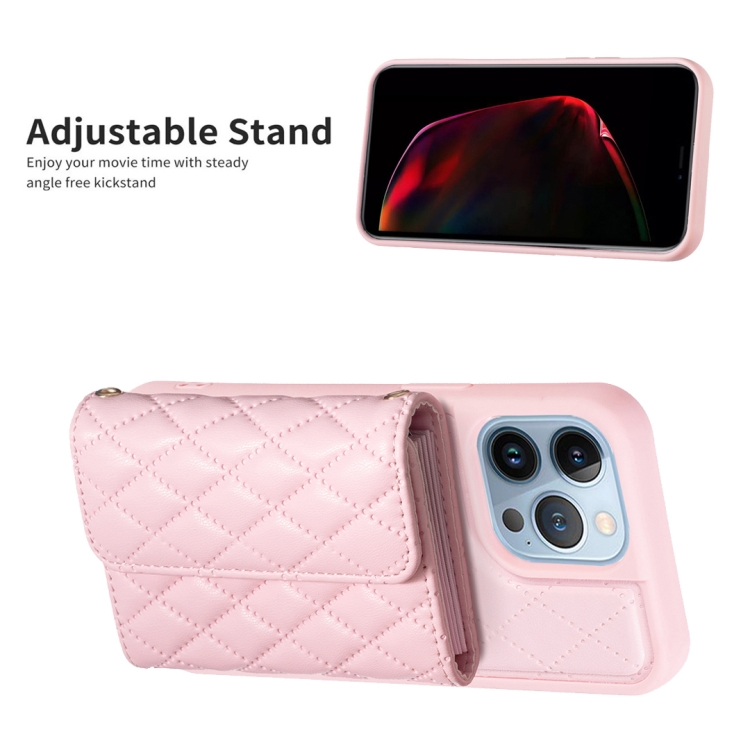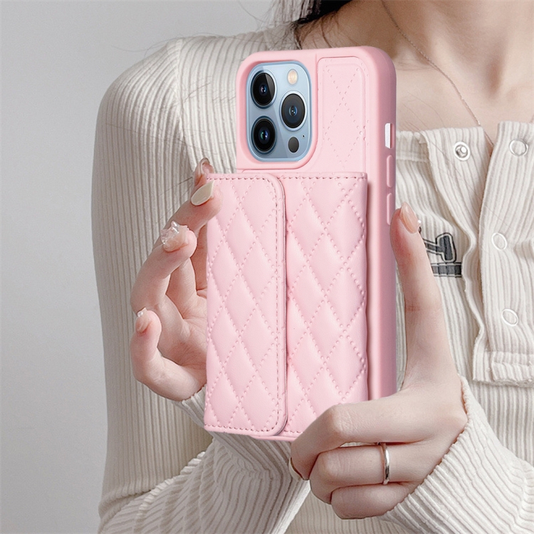 Funda para iPhone 13 Pro Horizontal Wallet Rhombic Leather Phone Case (Rosa)