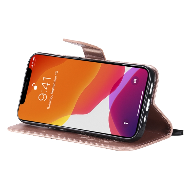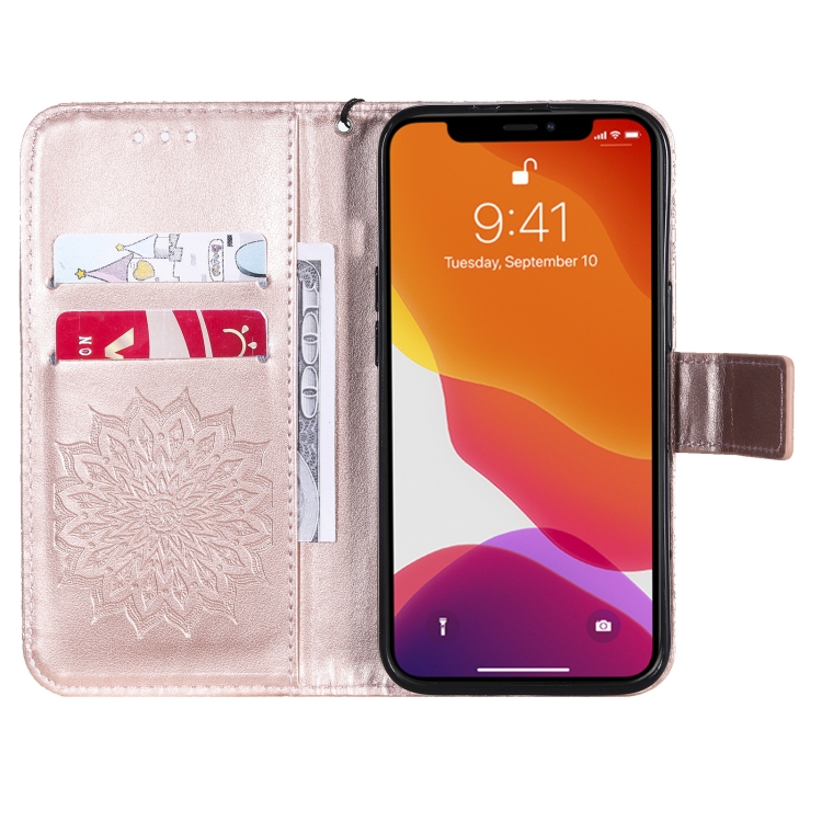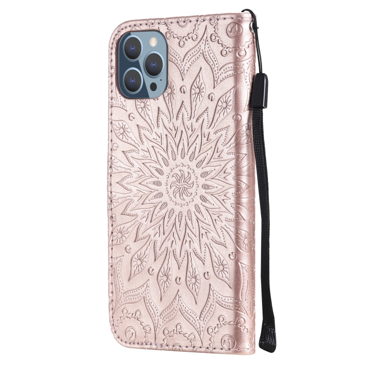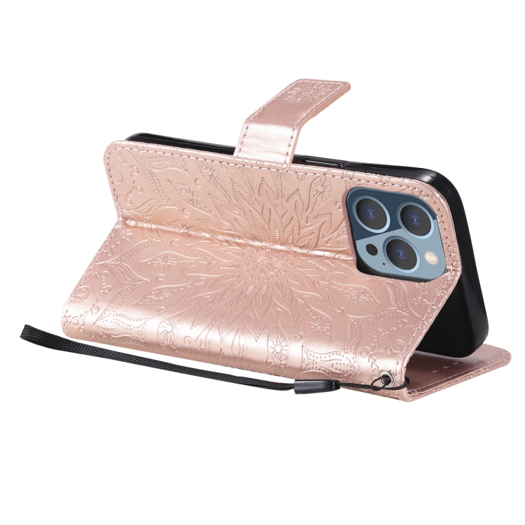 Estuche para iPhone 13 Pro Cuero PU Flip Horizontal Patrón Girasol Ranuras Tarjetas Billetera Cordón (Oro Rosa)