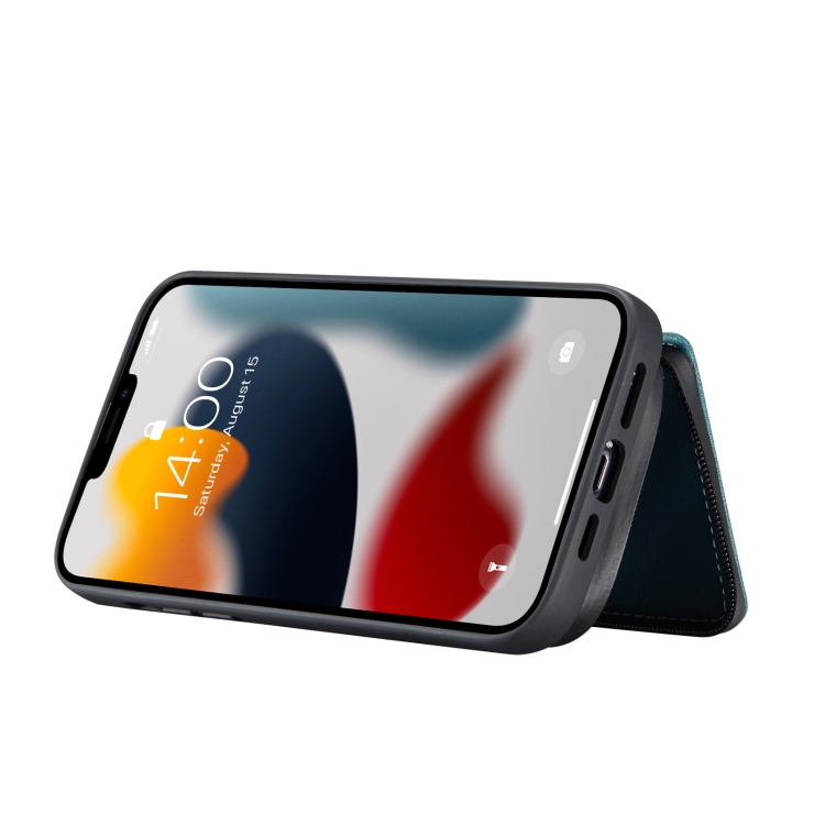 Funda de Cuero Jeehood para iPhone 13 Pro con Tapa Horizontal, Cremallera Magnética, Soporte, Ranura para Tarjeta y Billetera (Azul)