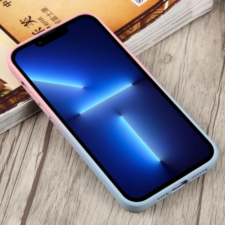 Funda para iPhone 13 Pro Liquid TPU Silicone Gradient Magsafe (Rosa Azul)