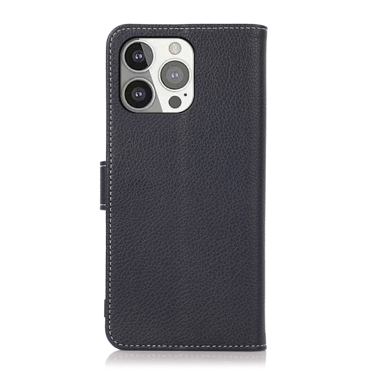 Funda para iPhone 13 Pro Litchi Texture PU + TPU con Tapa Horizontal Soporte Ranuras Tarjetas Billetera (Azul Oscuro)