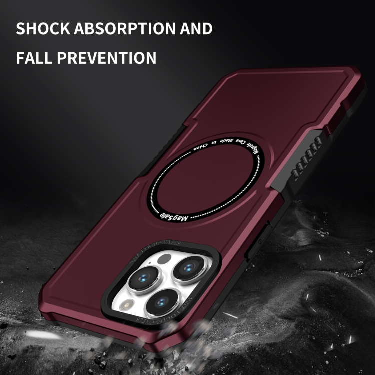 Estuche para Teléfono iPhone 13 Pro Magsafe con Armadura a Prueba de Golpes (Rojo Vino)