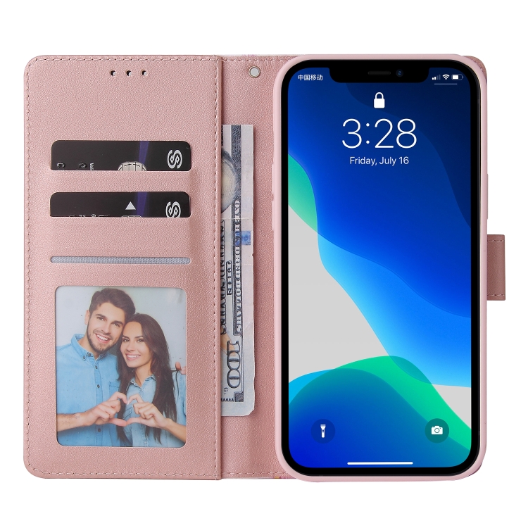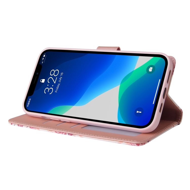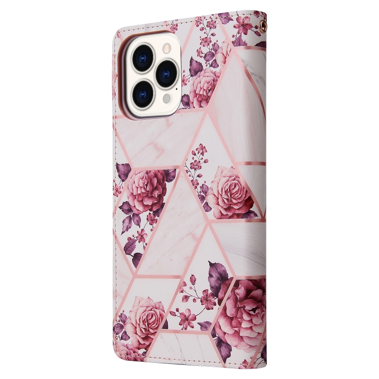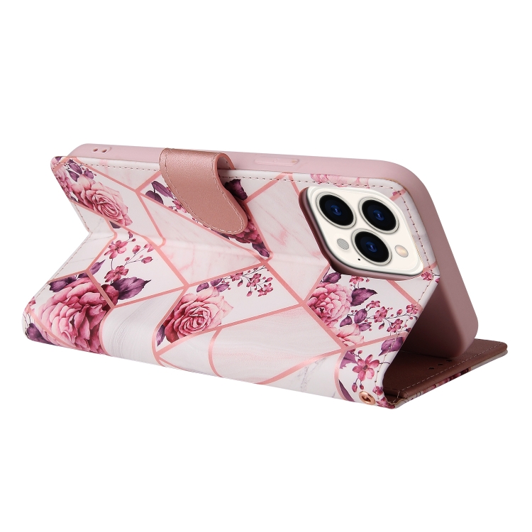 Funda de Cuero para iPhone 13 Pro Marble Bronzing Stitching Horizontal Flip con Soporte y Ranuras (Oro Rosa)