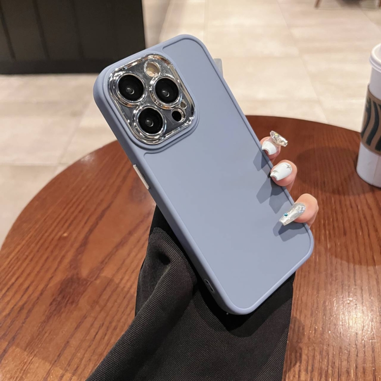 Caja de Teléfono para iPhone 13 Pro Max con Marco de Lente Galvanizada y Película de Lente (Gris Lavanda)