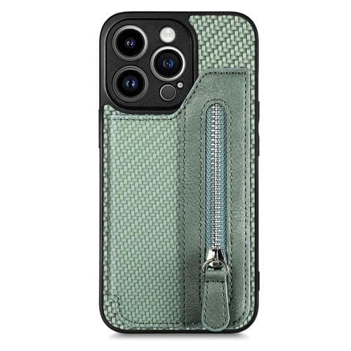Funda para iPhone 13 Pro Max Carbon Fiber Horizontal Flip Zipper Wallet Phone Case (Verde)