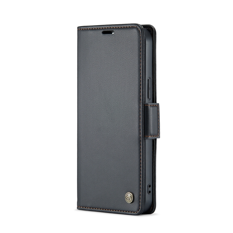 Funda para iPhone 13 Pro Max Caseme 023 Mariposa Hebilla Litchi Textura Rfid Cuero Antirrobo (Negro)