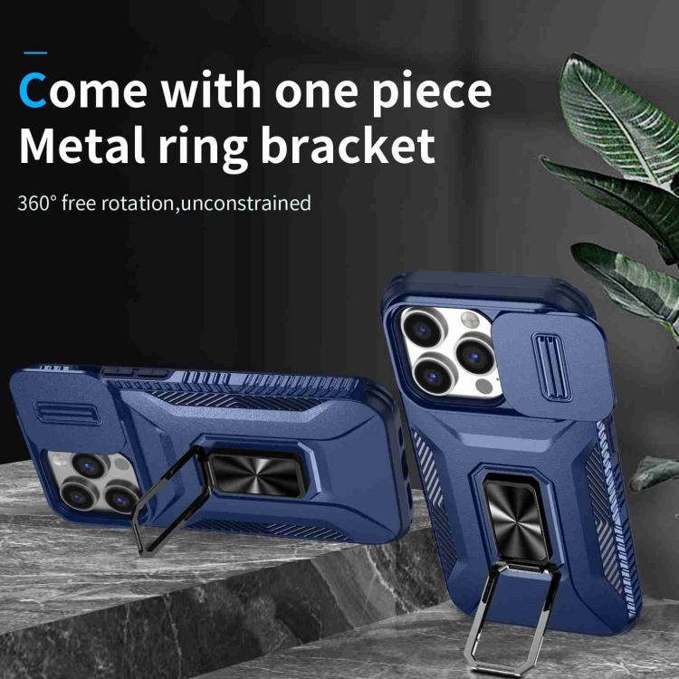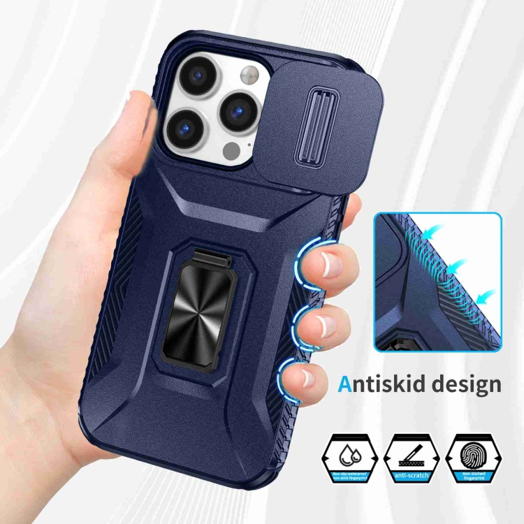Estuche para Teléfono iPhone 13 Pro Max con Soporte Deslizante para Levas (Azul)