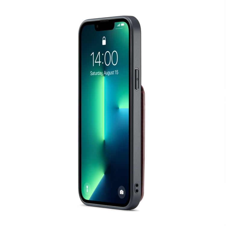 Funda para teléfono Fierre Shann Crazy Horse iPhone 13 Pro Max Contraportada Tarjetero PU (Rojo Vino)