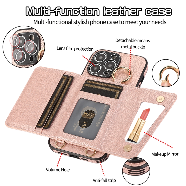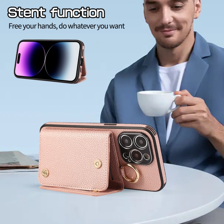 Funda para Teléfono iPhone 13 Pro Max Cubierta Trasera de Cuero con Anillo Cruzado (Rosa)