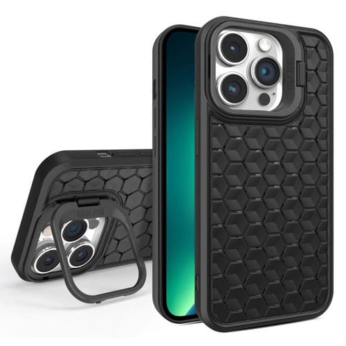 Funda magnética para teléfono iPhone 13 Pro Max Honeycomb Radiating Lens Holder (Negro)