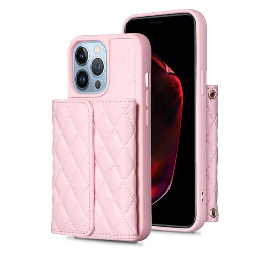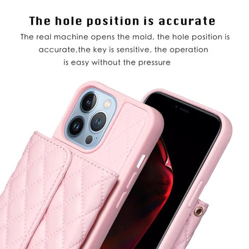 Funda para iPhone 13 Pro Max Horizontal Wallet Rhombic Leather Phone Case (Rosa)