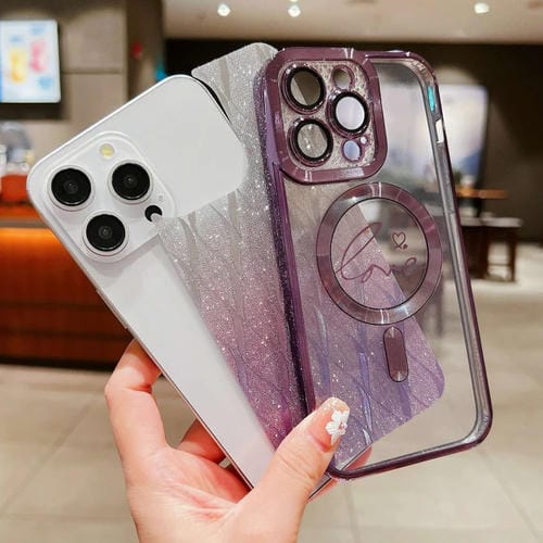 Estuche para Teléfono iPhone 13 Pro Max Magsafe Dual-Love Leaves TPU con Brillo Degradado (Rosa)