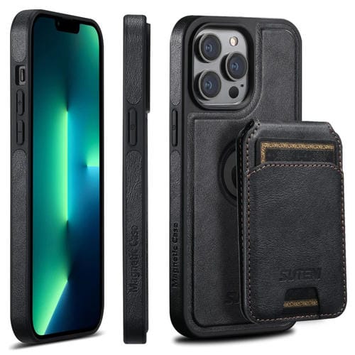 Funda para Teléfono Suteni M2 Oil Wax Magsafe para iPhone 13 Pro Max con Bolsa para Tarjeta Horizontal (Negro)