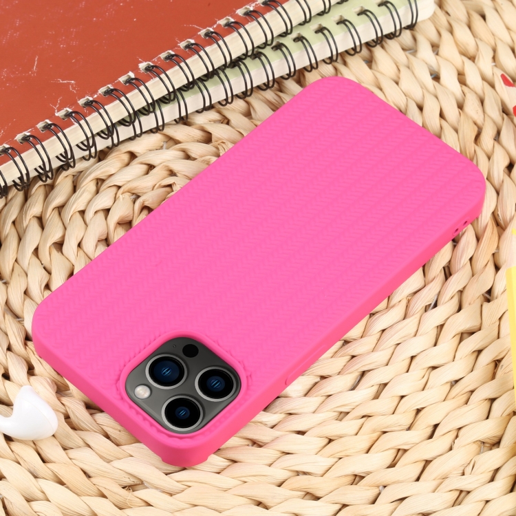 Funda de silicona para iPhone 13 Pro Max Weave Texture para teléfono (Rosa Roja)