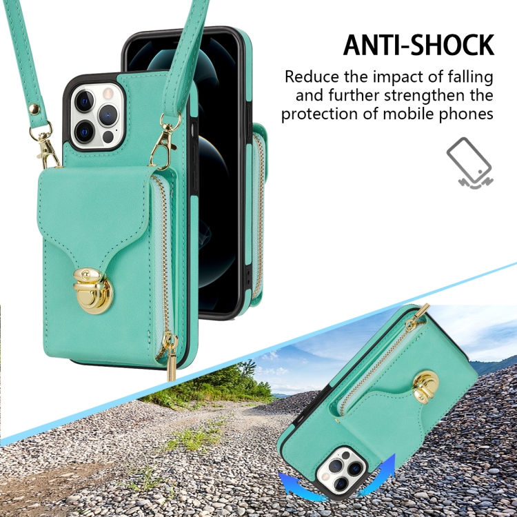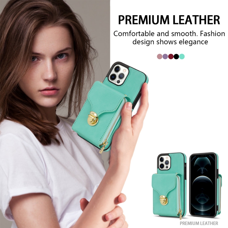 Funda para iPhone 13 Pro Max Zipper Hardware Card Wallet Phone Case (Verde Menta)