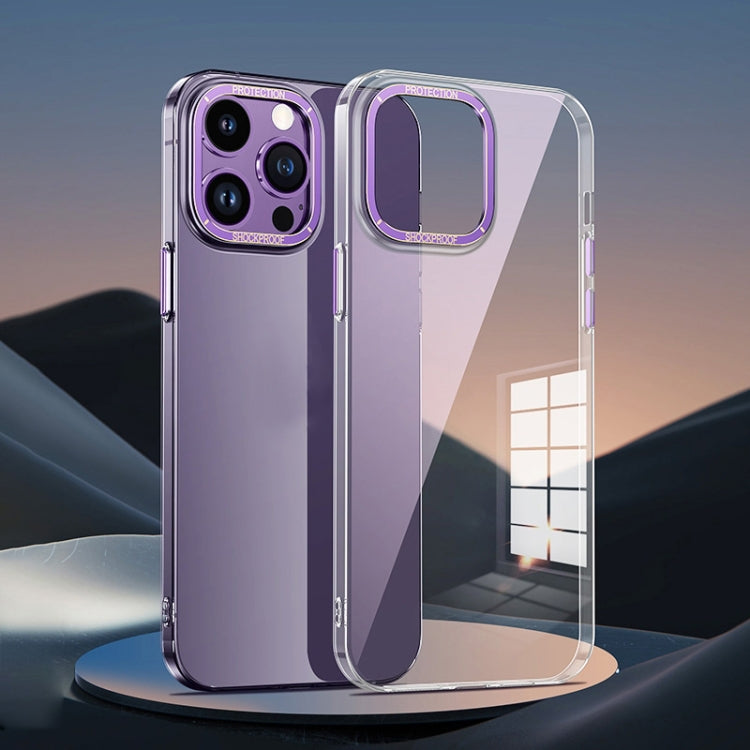 Funda para iPhone 13 Pro Metal Lens Ring Clear PC Phone Case (Deep Purple)