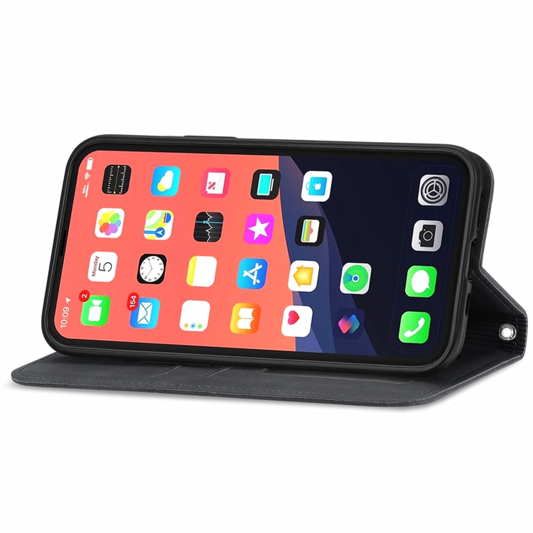 Funda de Cuero iPhone 13 Pro Retro Skin Feel Business con Tapa Horizontal Magnética Soporte Ranuras Tarjetas Monedero Marco Fotos (Negro)
