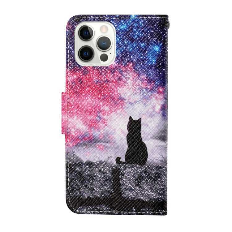 Funda de teléfono iPhone 13 Pro cuero con tapa horizontal patrón dibujo coloreado (Gato Estrellado)