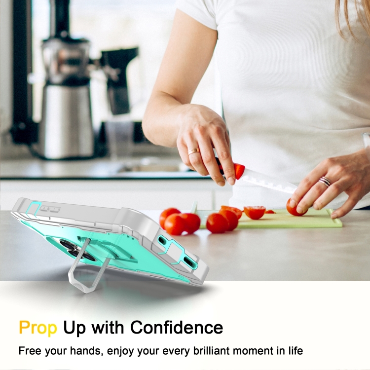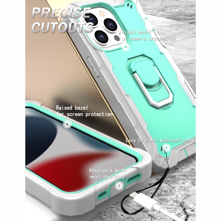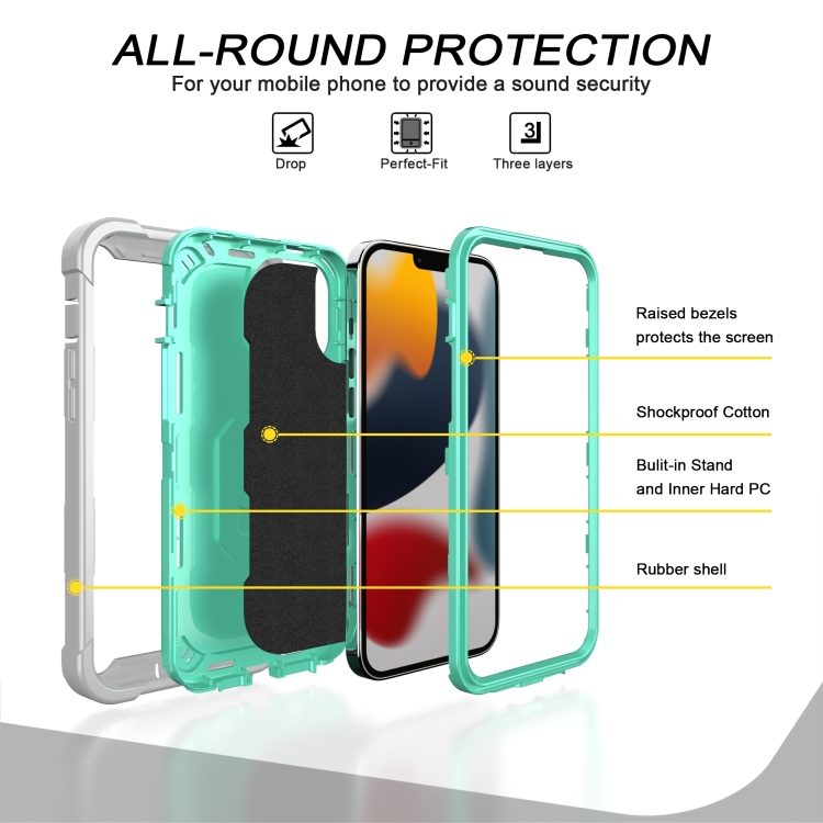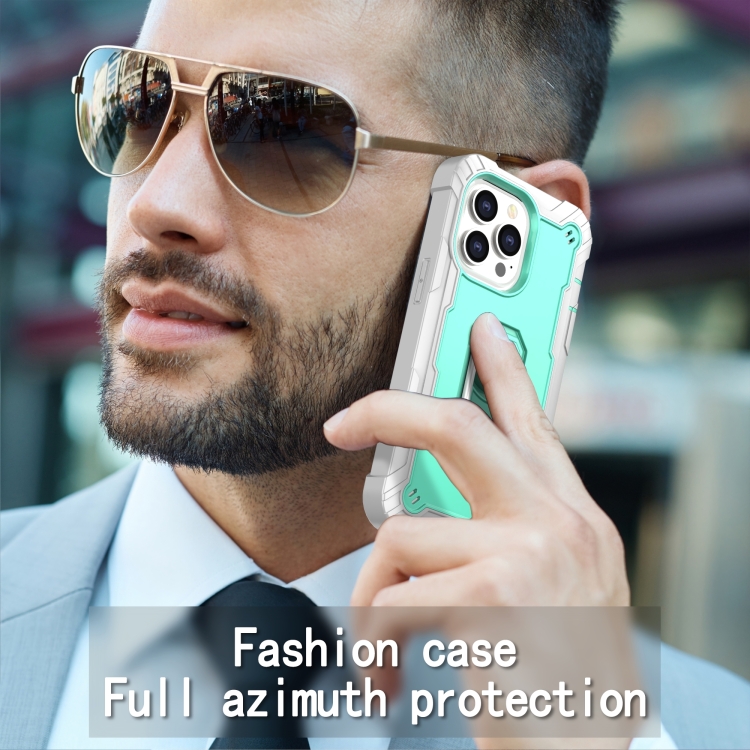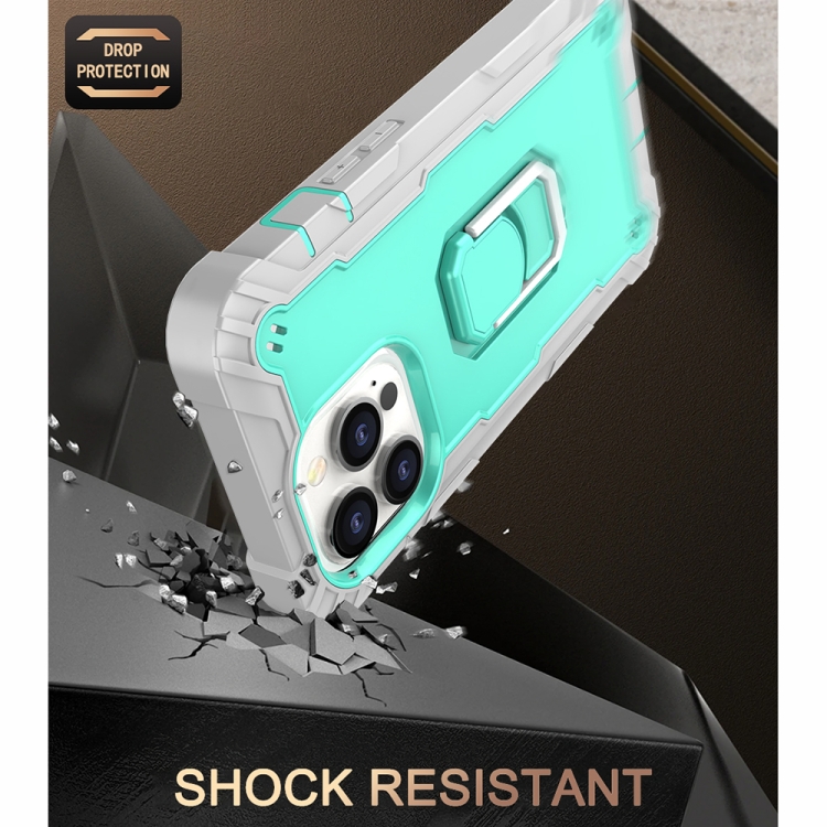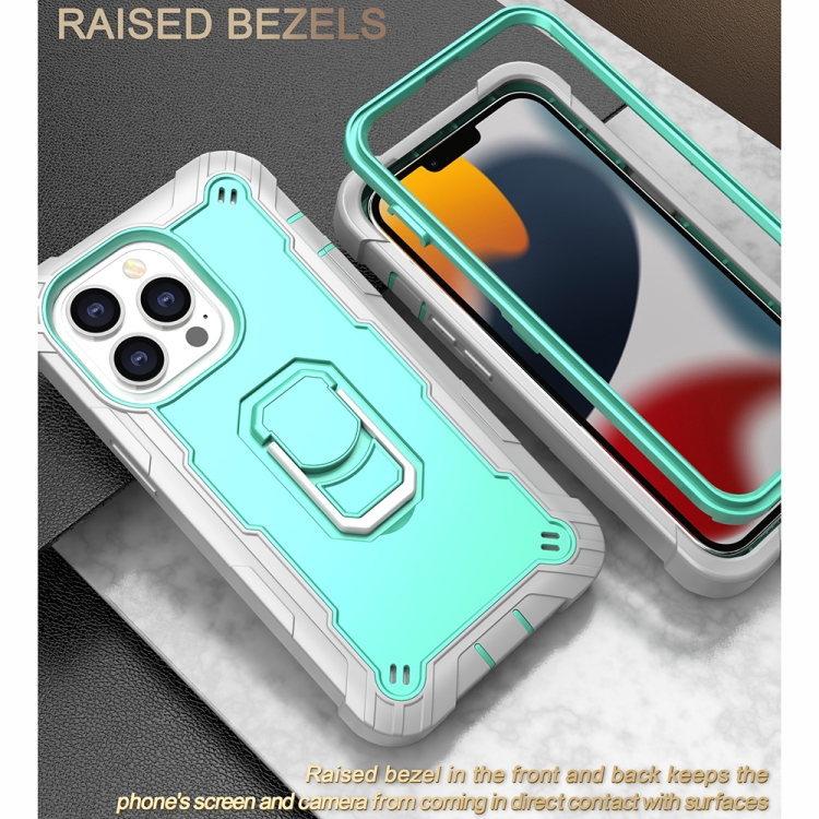 Funda para iPhone 13 Pro PC + Goma 3 Capas a Prueba de Golpes con Soporte Giratorio (Gris Blanco y Verde Menta)