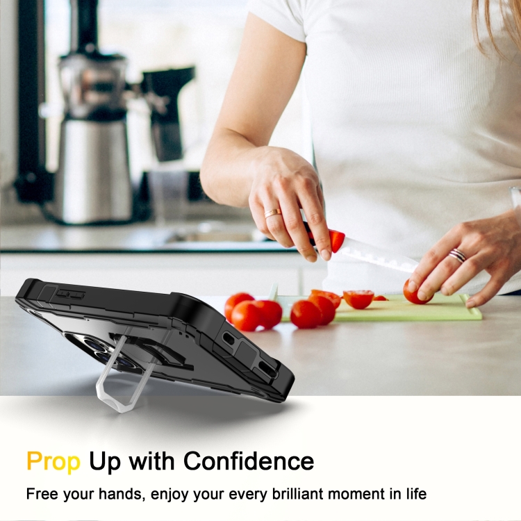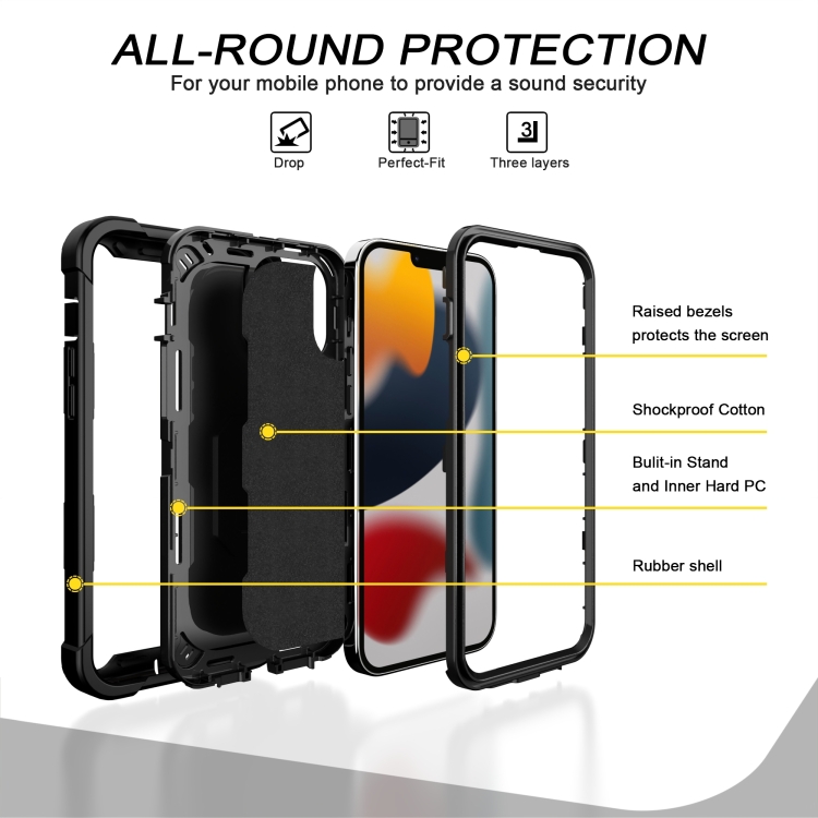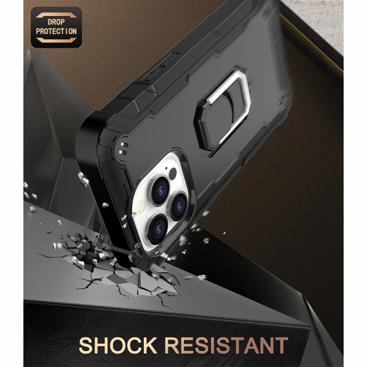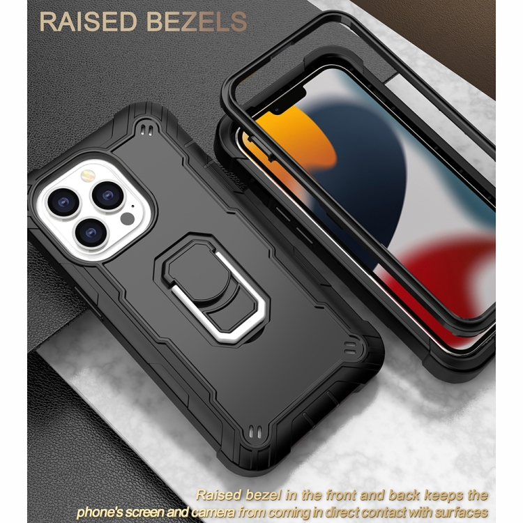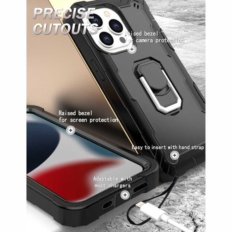 Funda para iPhone 13 Pro PC + Goma 3 Capas Prueba de Golpes Soporte Giratorio (Negro)
