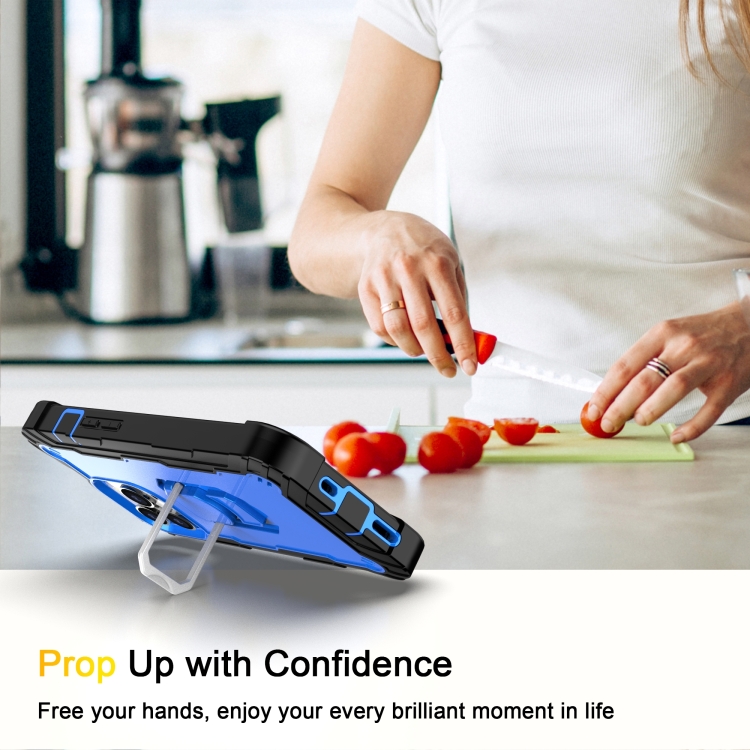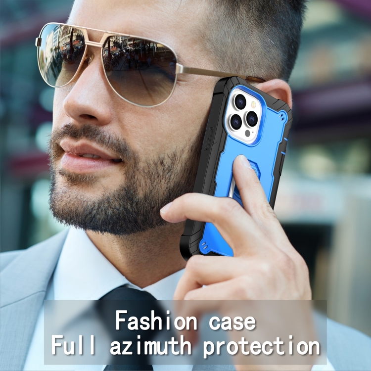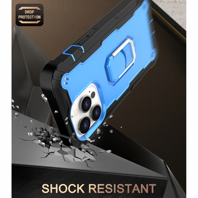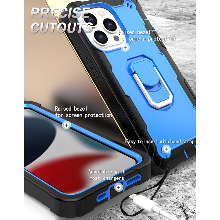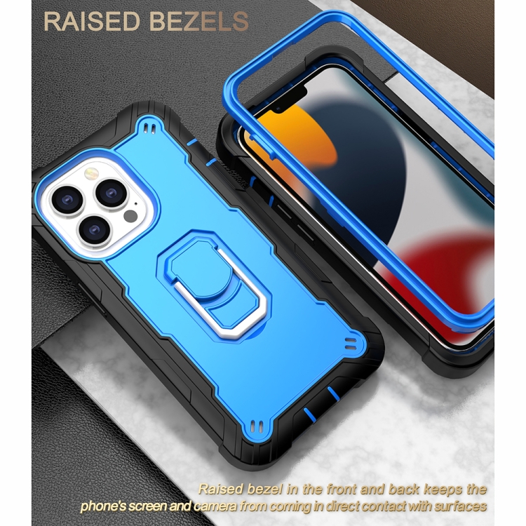 Funda para iPhone 13 Pro PC + Goma 3 Capas a Prueba de Golpes con Soporte Giratorio (Negro + Azul)