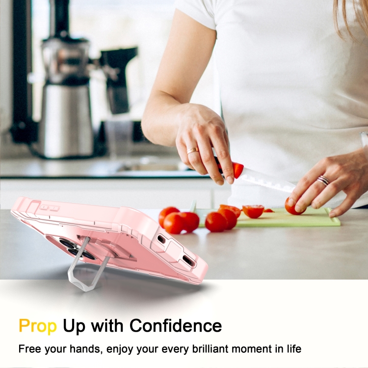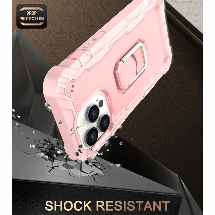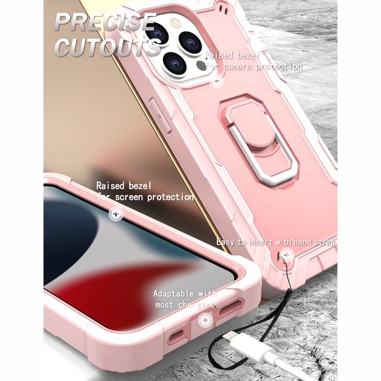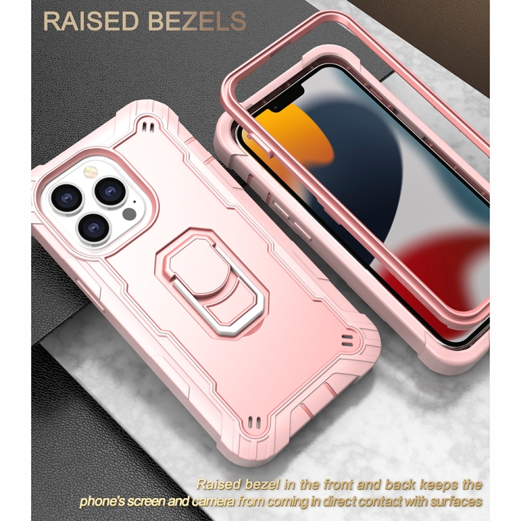 Funda Protectora para iPhone 13 Pro PC con Goma 3 Capas a Prueba de Golpes y Soporte Giratorio (Oro Rosa)