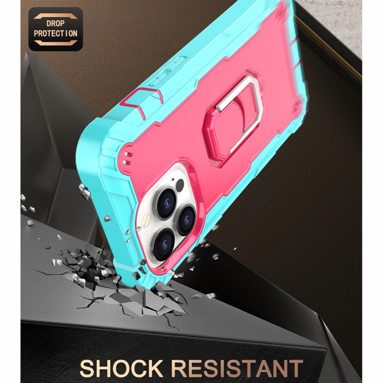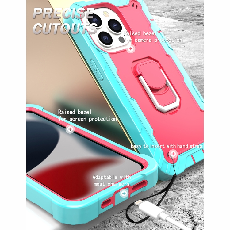Funda para iPhone 13 Pro PC + Goma 3 Capas Prueba de Golpes Soporte Giratorio (Verde Menta + Rosa Roja)