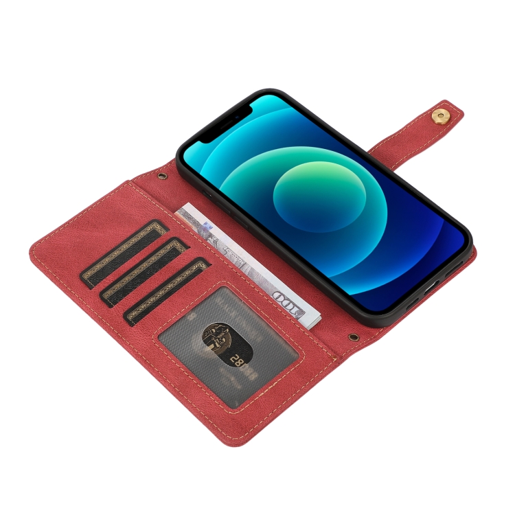 Funda para iPhone 13 Pro Pu + TPU Cuero con Tapa Horizontal Soporte Ranura Tarjeta Billetera Cordón (Rojo Vino)