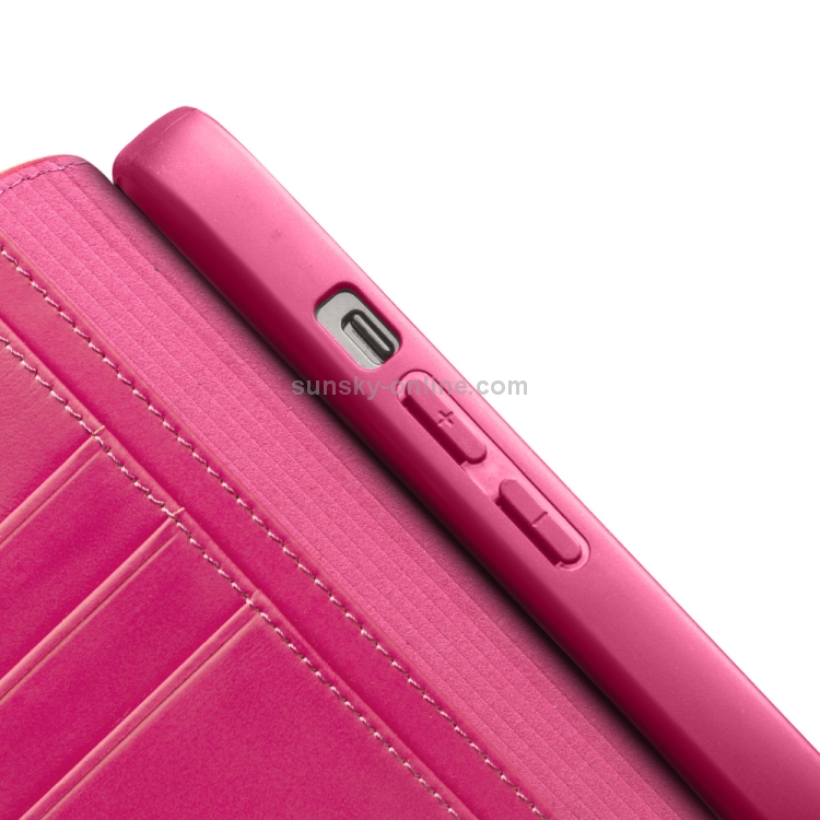 Funda de Cuero Qialino para iPhone 13 Pro con Tapa Horizontal Soporte y Ranuras para Tarjetas (Rosa Roja)