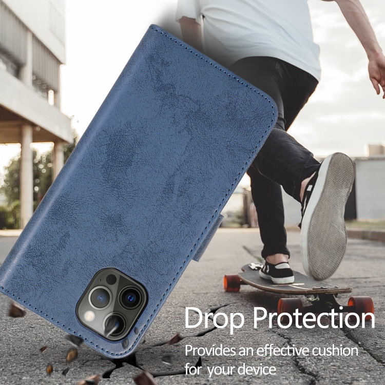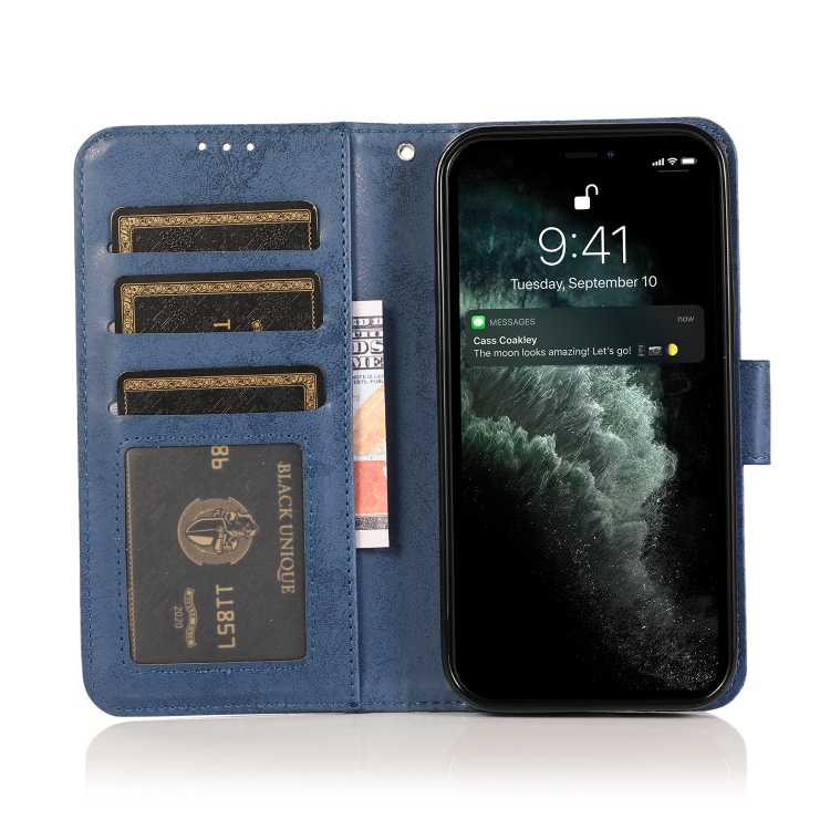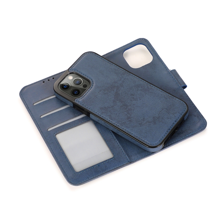 Funda para iPhone 13 Pro Retro 2 en 1 Cuero TPU + PU con Tapa Horizontal Magnética Desmontable Soporte Ranuras Tarjetas Marco Fotos Billetera (Azul Oscuro)