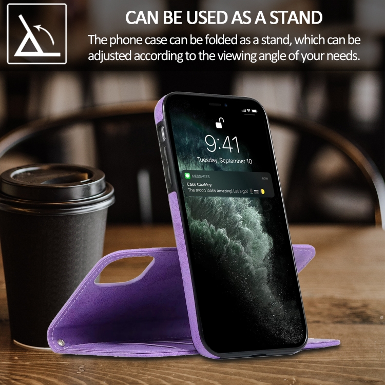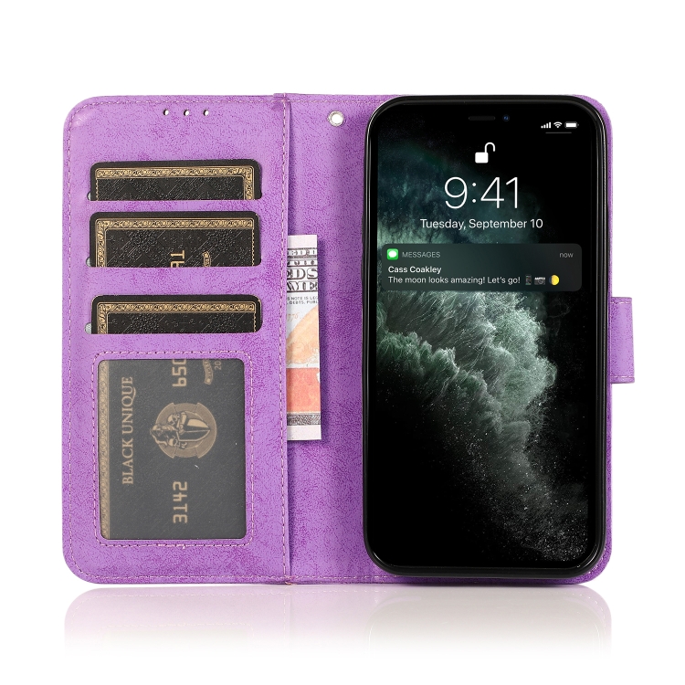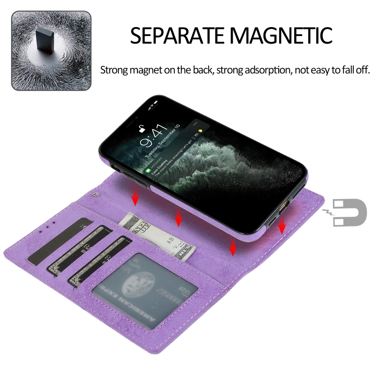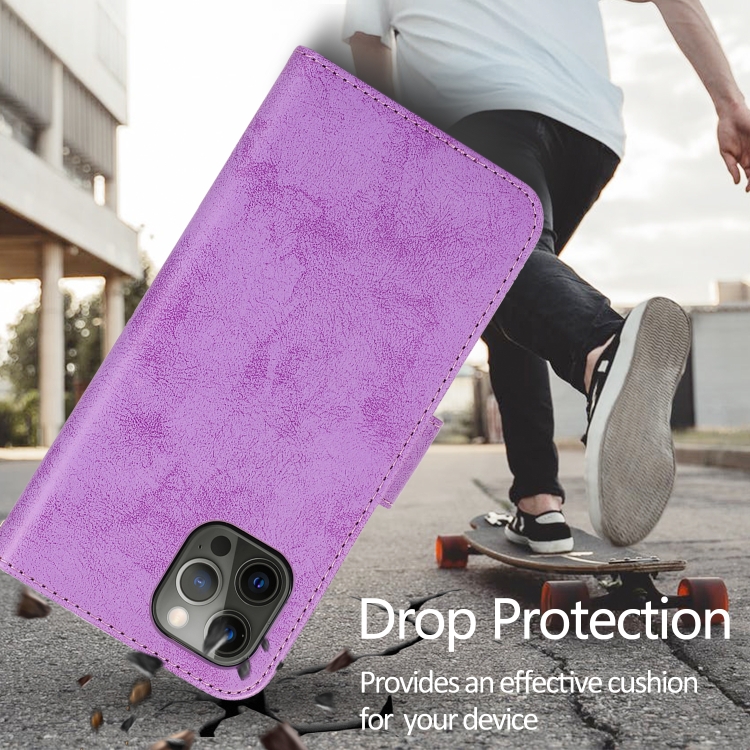 Funda para iPhone 13 Pro Retro 2 en 1 Cuero TPU + PU con Tapa Horizontal Magnética Desmontable Soporte Ranuras Tarjetas Marco Fotos Billetera (Púrpura)