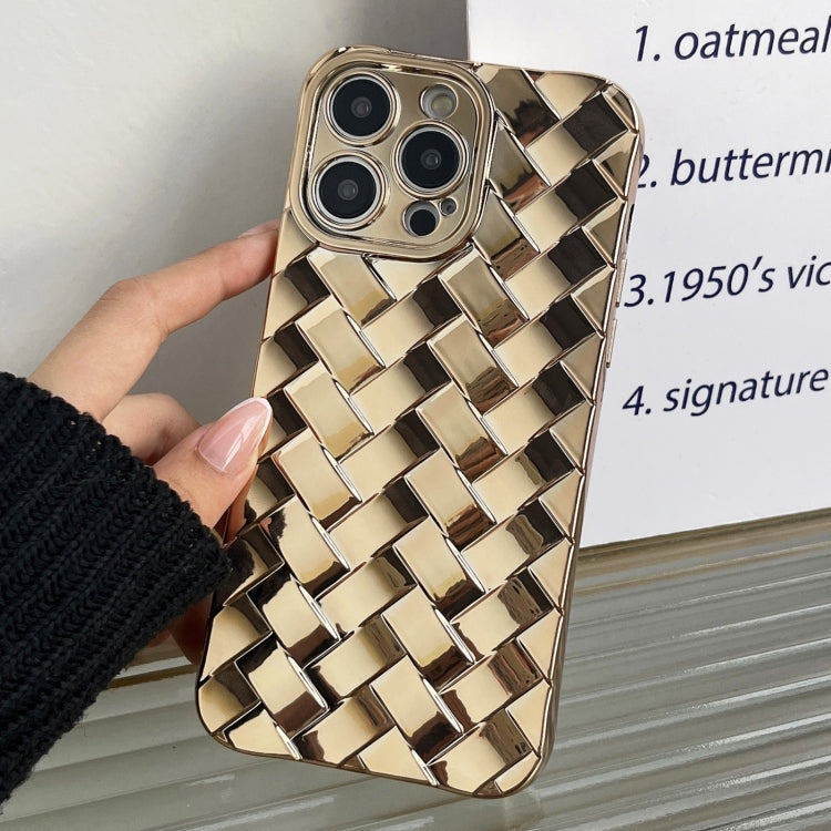 Caja del Teléfono para iPhone 13 Pro Retro Weave Textura Galvanoplastia (Oro)