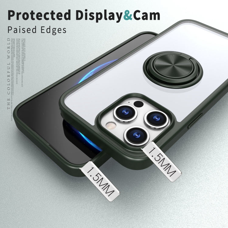 Funda para teléfono iPhone 13 Pro Ring Holder PC Hybrid TPU (Verde)